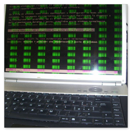 - assenza di segnale video: il portatile rimane acceso ma non visualizza nulla, all'accensione il notebook si spegne dopo pochi secondi